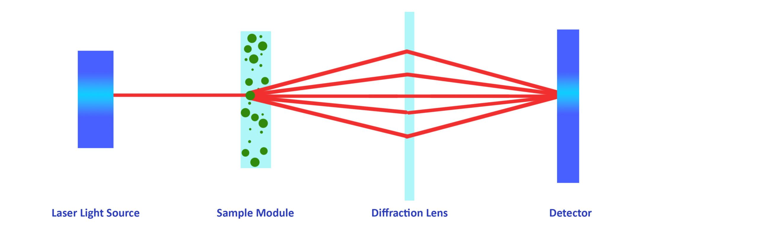 Particles diffract light through a specific angle depending upon their size, creating a diffraction pattern of light and dark circles. Measuring the intensity of light over a wide range of angles enables analysts to determine a particle size distribution. Laser diffraction analysis operates on this general principle.