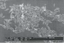 approximate aspect ratio of 3:1. The particles are