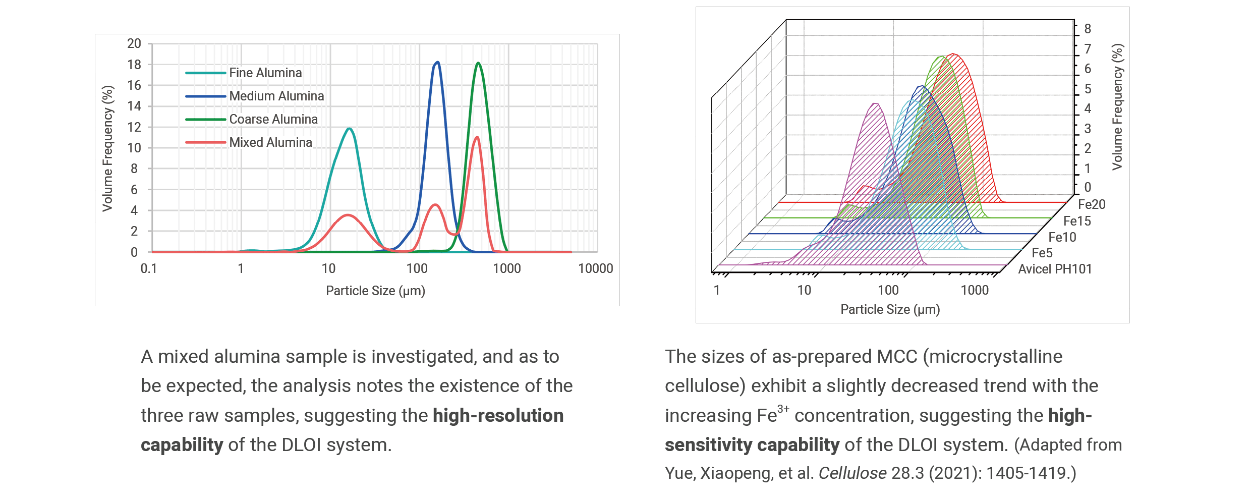 Maximum particle concentrationMaximum particle concentration of 5 million particles/mL at 2.5 µm particle size