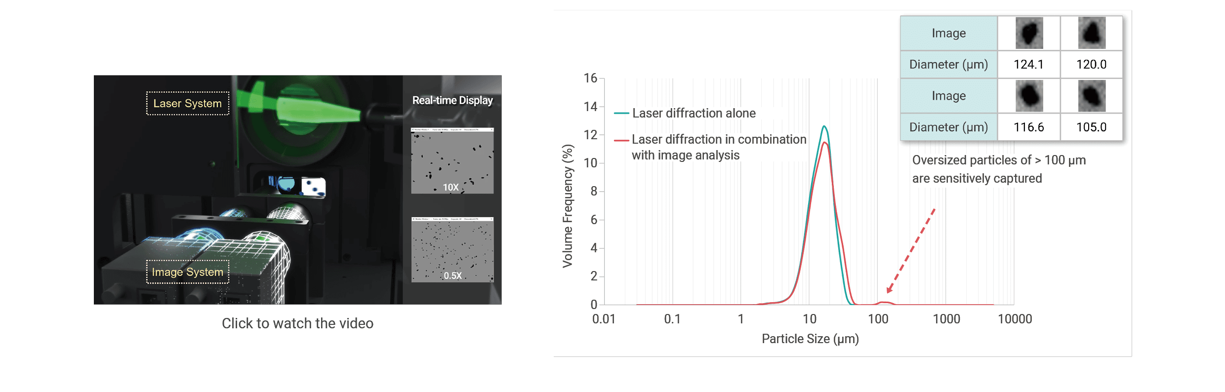 Size rangeParticle sizing and imaging 2 µm to 1 mm with magnification options of 20X, 10X, 4X, and 2X